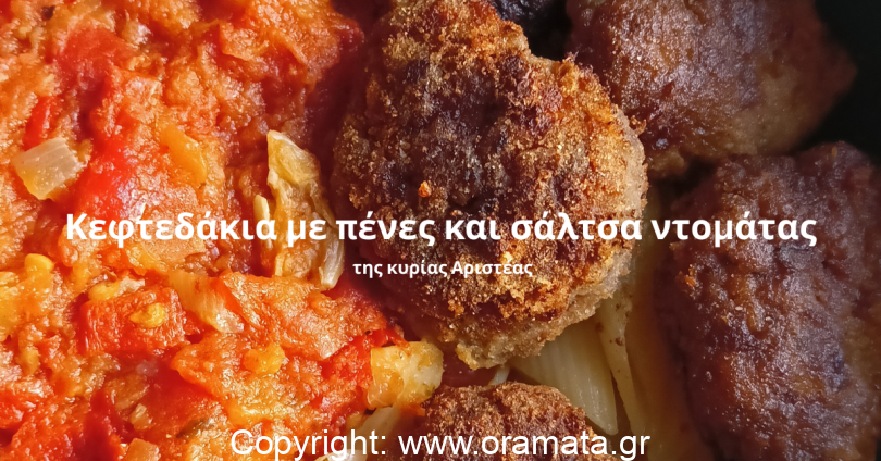 Κεφτεδάκια με πένες και σάλτσα ντομάτας της κυρίας Αριστέας